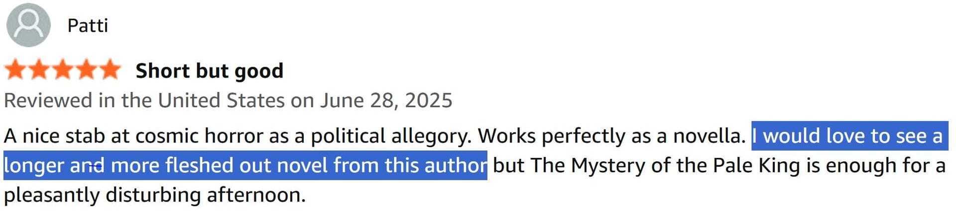 Happy book birthday to The Mystery of the Pale King which turns one today! It has been an immensely gratifying year professionally thanks to the support of family, friends, peers, and my publisher. A profuse thank you to all of them as well as my Patreon subscribers new and old, free and paid. You deserve all the praise and - more importantly -writing I can offer and I’m going to give it to you as I ramp up my posts there. For those who have yet to subscribe, consider joining for free and see if you like what you read.